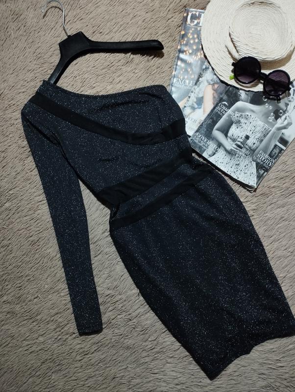 Шикарна сукня з люрексом на одне плече/плаття з вставками із сітки