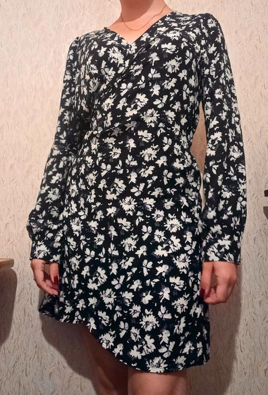 Сукня жіноча, літня, чорно-біла, з довгими рукавами, фасон: на запах, приталена, розмір 42-46