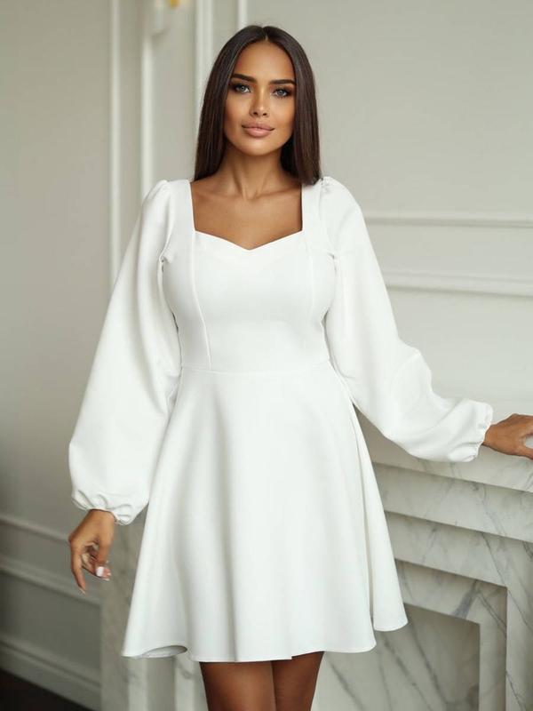 Біле плаття з креп-костюмки, розмір XL (краще дивитись заміри) Дуже комфортне та зручне плаття вище колін із рукавами на резинці. Має гарний жіночний силует і легку пружність тканини. Заміри: • Обхват грудей: 98–102 см • Обхват талії: до 82 см • Обхват стегон: до 108 см • Довжина сукні: 88 см • Довжина рукава: 62 см Матеріал: креп-костюмка (злегка тягнеться 2–3 см) Стан відмінний, одягнуте було один раз на розпис