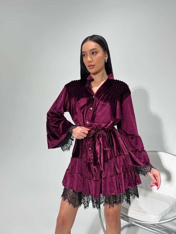 Жіноча оксамитова сукня кароліна з пишною спідницею та мереживом