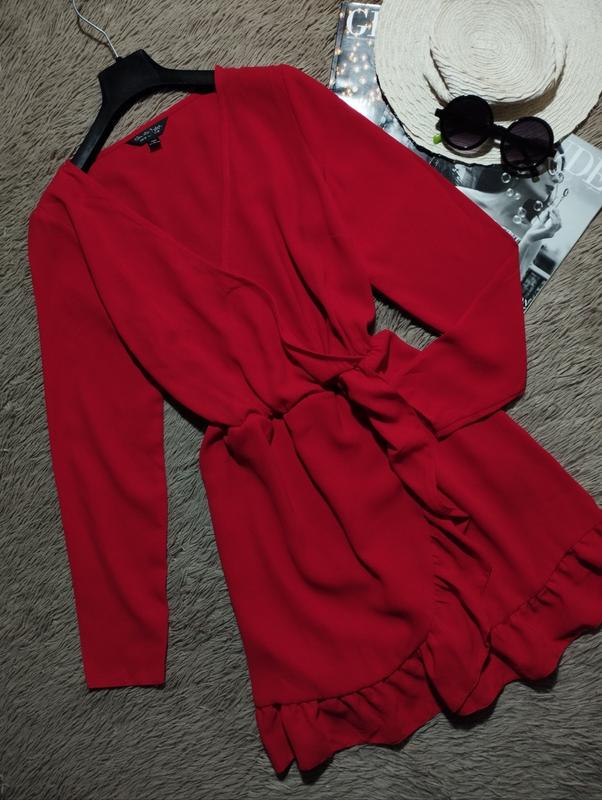 В отличном состоянии, на спинке есть затяжка (последующая фото), не очень заметно, в цене учтена. Красивое платье с рюшами на запах. Запах сшит. Тканина легка, не тягнеться. Размер 10/38/М, но смотрите по замерам Замеры (полуобхват): Груди 48 Талия 31 (тянется до 44) Стегна 52 Рукав 59 Длина от плеча 81