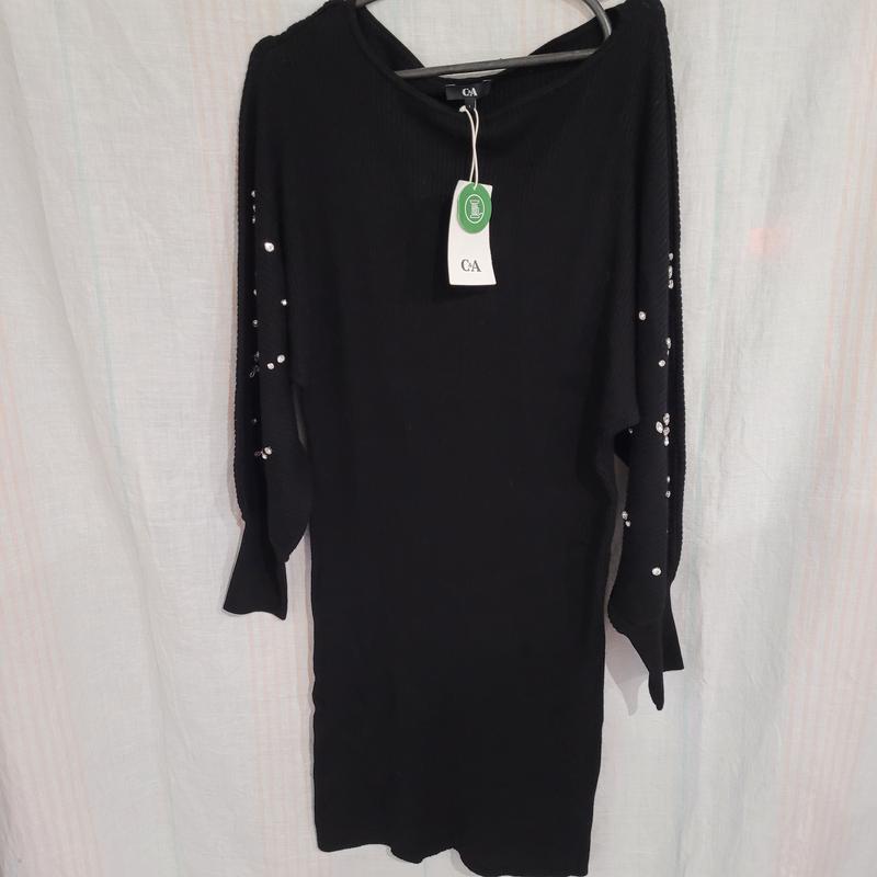 нарядное тёплое платье стрейч,рукав летучая мышь вышит крупными стразами, ог90+, об 80+, рукав от ворота 71, длина 96.