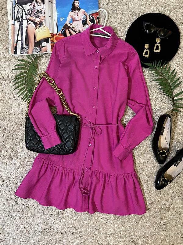 Для більш точного визначення, виміри, порівнюйте із вимірами подібної речі, а не зі своїми обсягами. Яскрава міні сукня-сорочка з рюшею. Тканина тонка, фактурна, приємна. Не просвічується, не тягнеться. Крій трапеція, низ рюша. Застібається на ґудзики. Має в комплекті пасок. Стан: ідеальний. Дефекти: немає. Розмір на бирці: 10/38 {Виміри виробу вимірюються у напівобхваті, а не від шва до шва!} Виміри виробу: Плечі 37 см., Рукав 60 см., Висота пройми 22 см., Ширина рукава 16 см., Напівобхват грудей 51 см., Напівобхват талії 54 см., Напівобхват стегон 57 см., довжина по спині 87 см., довжина від плеча 87 см.. Склад тканини: 95% віскоза, 5% поліамід. Країна виробник: В'єтнам. Бренд: Primark. Оплата і доставка: Оплата на картку монобанк. Бронювання на оплату тільки 24 г. При змінах наміру купувати обов'язково повідомляйте! Доставка: На час введення воєнного стану, уточнюйте, чи можлива доставка до Вашого пункту. Актуальні новини можна уточнити на сайті перевізника та за номером телефону контакт-центрів. Не забудьте ПІДПИСАТИСЯ, щоб бути в курсі всіх новинок та розпродажів!