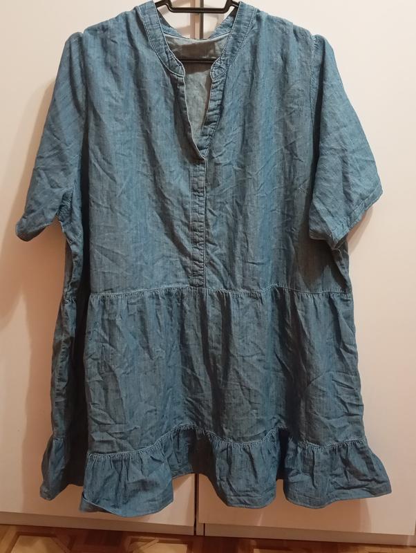 Плаття літнє жіноче з тонкої джинсової тканини. Тканина не тягнеться. Влітку буде в ньому обсолютно не жарко. довжина — 90 см рукав від плеча — 29 см НОГ — 75 см піт — 72 см. НОС — 97 см.