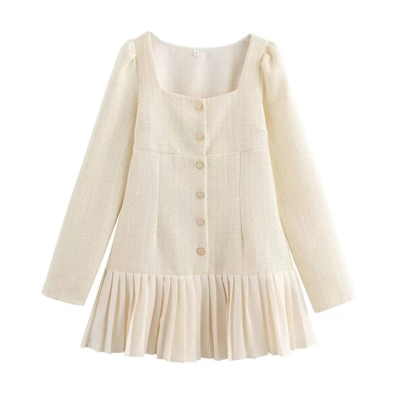 Твідова сукня із плісованим низом імітацією спідниці, декорована золотими ґудзиками😍 Розмір: Л Довжина 80 см