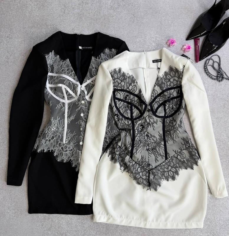 Розмір: 42-44 ; 46-48 Кольори: чорний+біле мереживо; білий+чорне мереживо Тканина: костюмка + французьке мереживо Сукня, яка створить незабутній силует