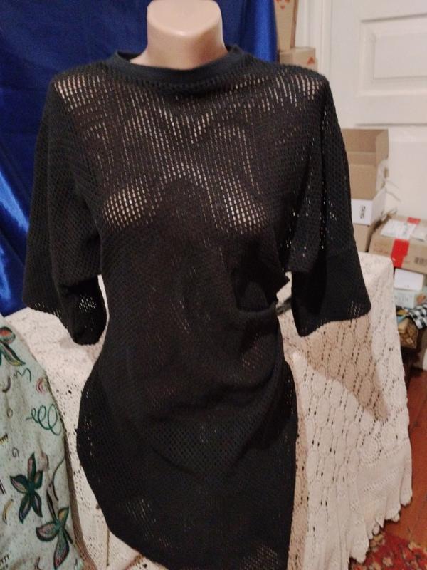 очень красивое чёрное платье сеточка.Берки отсутствуют,ткань плотная, тянется и хорошо держит форму.Размер с,м,л. опис состояние отлочный длина 79 ширина комди 46 ширина бедер 52