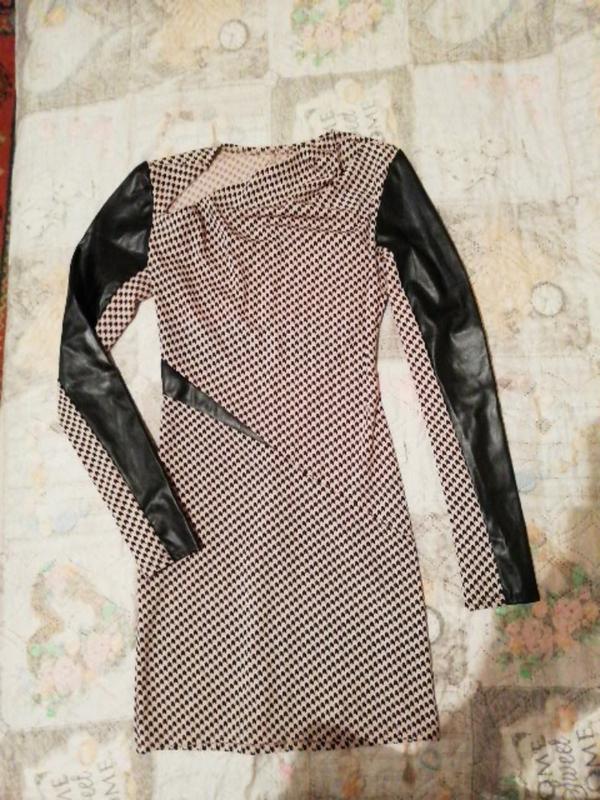 Платье короткое в обтяжечку, ткань тянется на руковах вставки кож. зам.