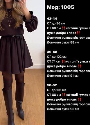 🖤🤎НОВИНОЧКА🤎🖤 ‼️Отримали у великій кількості‼️ ▪️Сукня ▪️Мод. 1005 ▪️Розмір - 42-44, 46-48, 50-52 ▪️Тканина - креп костюмка ▪️Пояс з тканини ▪️Кольори - чорний, шоколад, марсала 1451