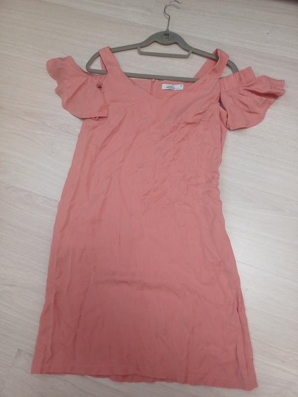 Сукня рожева,тканина льон, довжина 98 см,з застібкою на спині ОГ 40.5 см, ОС 50.5 см