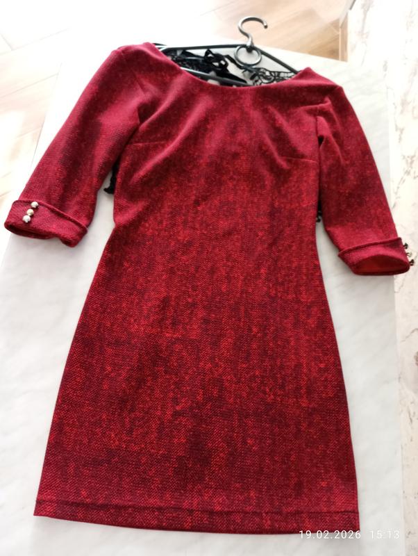 красного цвета с тектурированной тканью и черными вставками на плечах и спине, которая имеет застежку на ленте