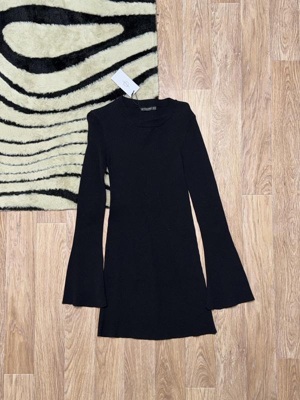 мини-платье Stradivarius трикотажное платье с круглым вырезом и эффектными расклешёнными (колокольчиками) рукавами