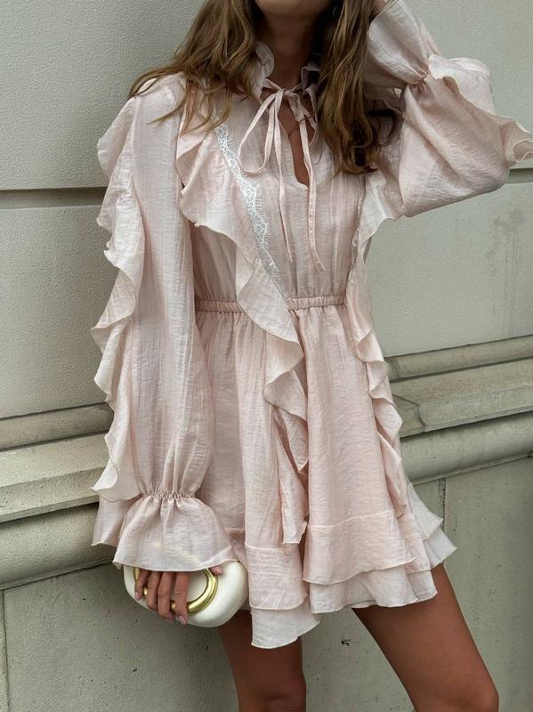 Сукня " Mimi " 2520 грн Розмір : XS-S , M-L ,XL Довжина рукава 71 см Плечо 10 см Тканина тенсель + французьке кружево Якість люкс Колір молоко , пудра , кремовий est
