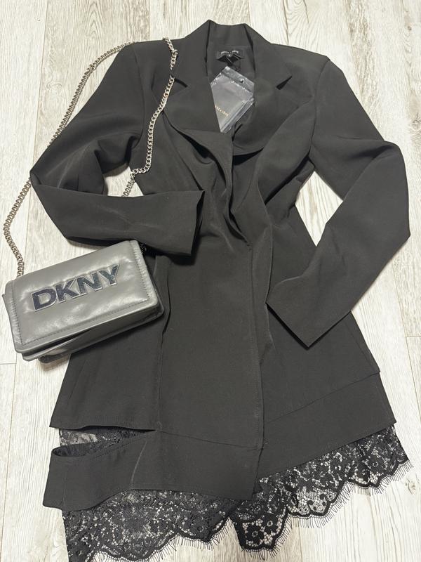 Піджак-сукня з італійським мереживом. Високоякісна тканина — костюмка середньої щільності. Якісна фурнітура. Ефектна та стильна модель, яка красиво лягає по фігурі й підкреслює силует.