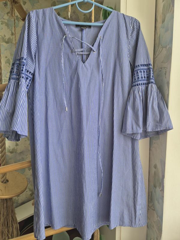 Сукня вільного крою з красивими рукавами, на зав'язках, приємна легка тканина. Заміри в стрічці фотографій.
