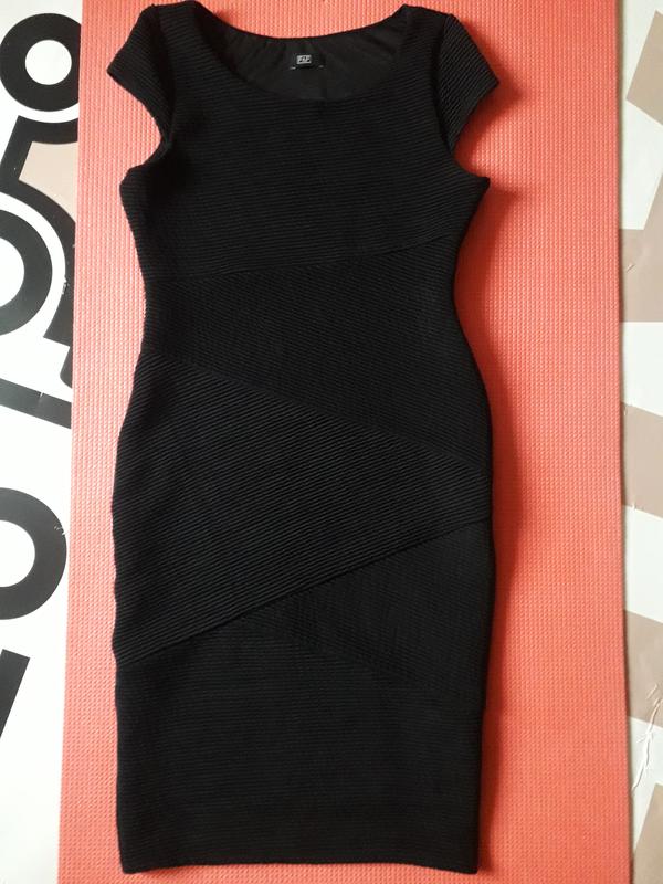 Стильне бандажне з переплетінням полос,сілуетне,коктельне плаття відомого бренду.Колір чорний,тканина плотненька,трохи тягнеться. Плаття на приємній підкладці,з боку блискавка. Заміри в спокойному стані: Плечі 34+ Пог 45+ Пот 38+ Пос 45+ По низу 40+ Довжина 100. Поліестер,еластан. Нова,укрпошта.