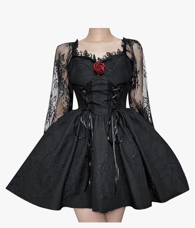 Елегантна чорна сукня з мереживом 🌹 Стильна та дуже ефектна чорна сукня з пишною спідницею. Верх виконаний із ніжного прозорого мережива з довгими рукавами, що додає образу жіночності та витонченості. Корсетна частина гарно підкреслює талію, а пишна спідниця створює святковий та романтичний вигляд. Родзинкою сукні є декоративна червона троянда на грудях. Ідеально підійде для: ✨ святкових подій ✨ фотосесій ✨ вечірок ✨ особливих подій Сукня виглядає дуже елегантно та привертає увагу.