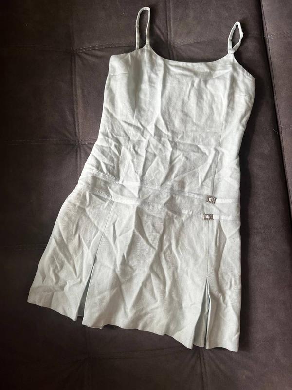 Гарне плаття ніжно-блакитного кольору ззаду на блискавці, спереду декоративні два паска. У грудях 45 до 47 см , довжина 84 см, спинка 40 см, талія до 37 см, стегна до 46 см)