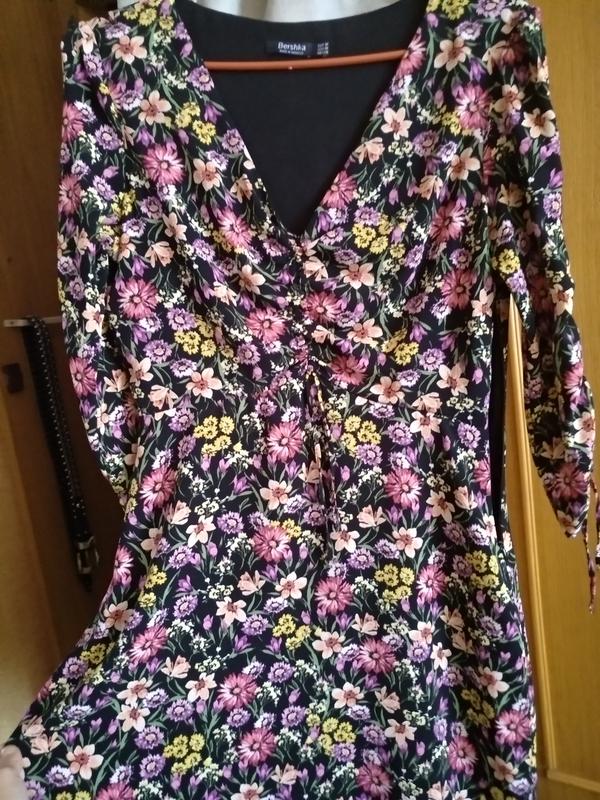 Стильне весняне платтячко фірми bershka, привезене з Італії, розмір М,довжина 85см, рукав 45см,в поясі півобхват 36см,збоку на замочку. Вдягнуто було 1раз.