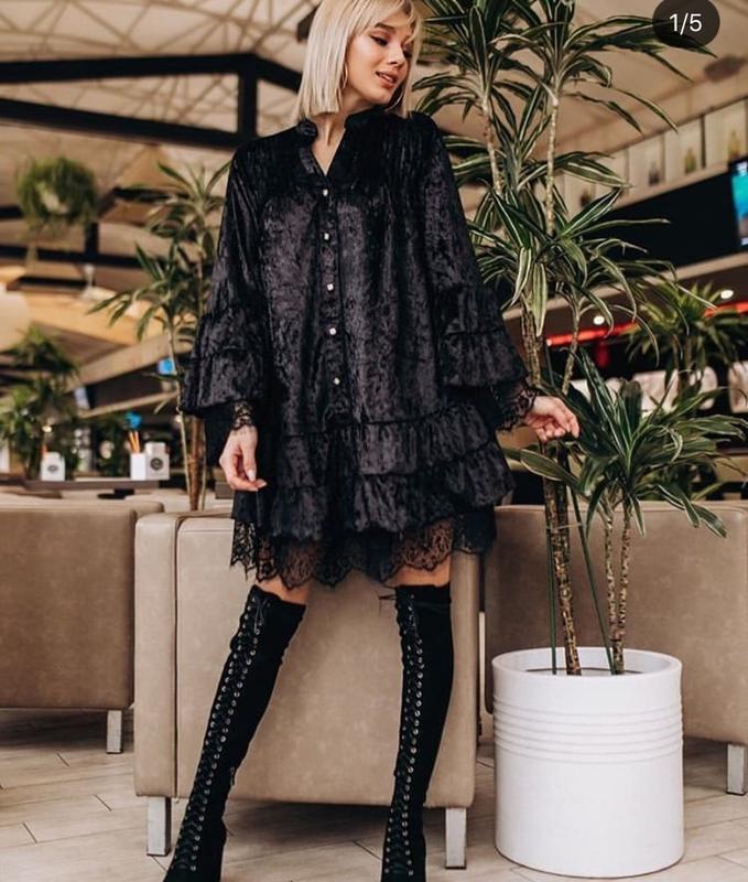 Дуже гарне плаття з крепу з французьким мереживом,розмір over size s/m/l.Можна носити з поясом можна без.