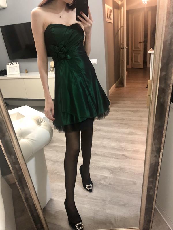 Гарне плаття глибокого зеленого кольору. Розмір xs. Одягнене один раз в ідеальному стані.