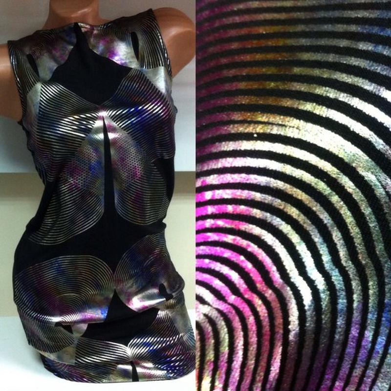 Стильне плаття .Ззаду чорне а спереду тканина з блестком різнобарвна.Виглядає дуже ефектно