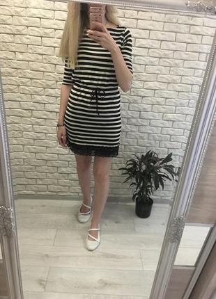 Полосатое платье на талии с завязкой. ❤️ Очень круто смотрится вживую. Подшивалось кружево, так как мне было коротковато)) На фото рост модели 183 см.
