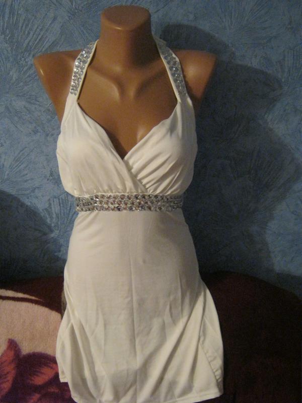 міні сукня біле оздоблене камінням в області декольте