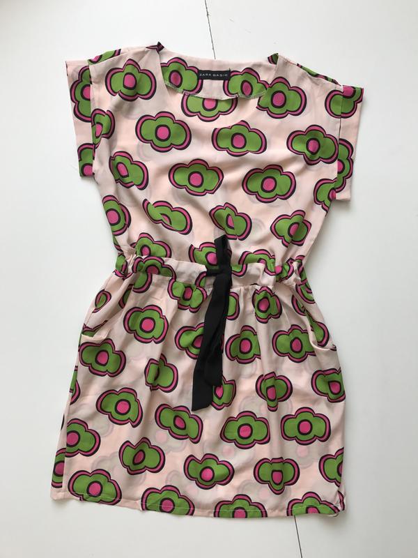 Летнее платьице Zara С поясом ,по бокам кармашки Состояние идеальное