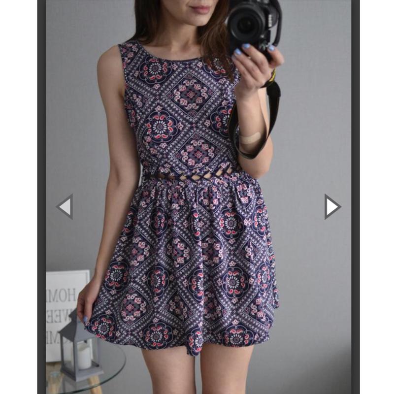Легке літнє плаття в орнамент зі шнурівкою на талії Chica Booti розмір S склад:100% rayon стан ідеальне
