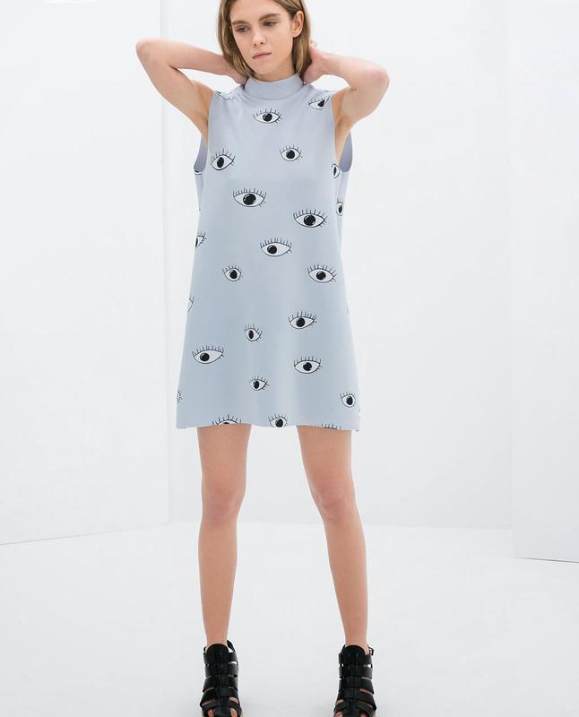 Круте небесного кольору плаття в актуальний принт Zara, ззаду повністю на блискавці . Розмір OneSize