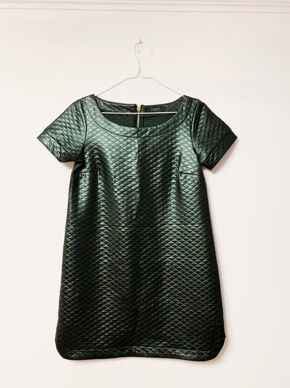 Стеганное сукня-міні трапеція з декоративною блискавкою на спині. Тканина з невеликим блиском