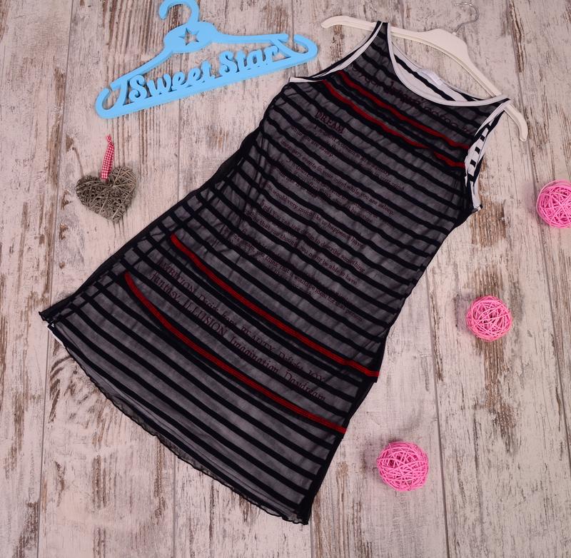 Платье Promod Нижняя ткань в полоску с надписью. Верхняя ткань - сеточка. Подходит на размер XS/S ПОГ - 42 см Длина - 79 см ПОТ - 39 см ПОБ - 46 см