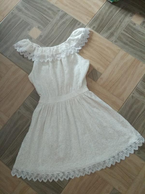 Гарне платтячко, на бірці розмір М, але швидше піде З: 28 см, тягнеться до 35, об'єм грудей на рівні пройм 39-40 см, довжина 67 див. Бирки зі складом немає, швидше за все бавовна.