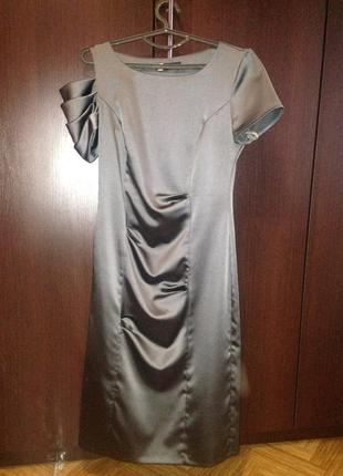 Плаття коктейльне, трикотин атласний, сірого кольору б.у (одягнене 1раз) Розмір 42 Д 105см За spini 38см За стегон 50см