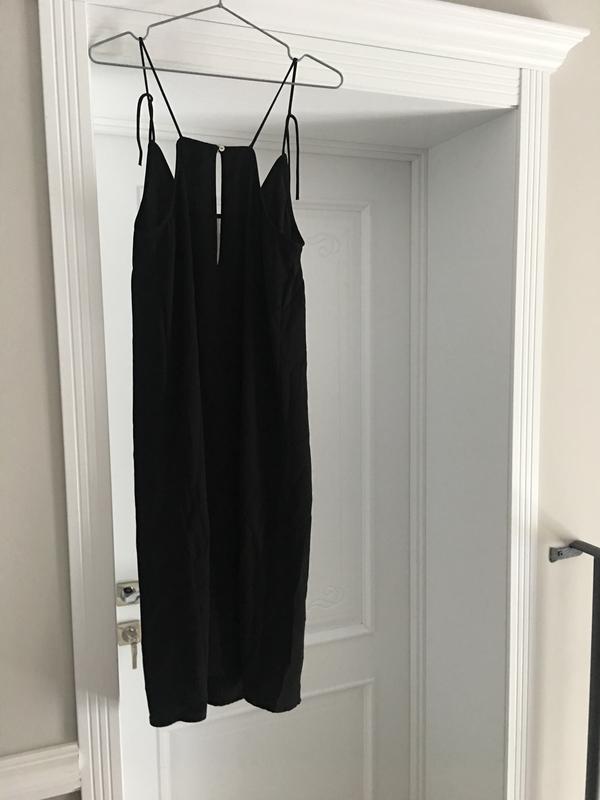Плаття прямого крою, гарно дивиться з білою футболкою. Спереді виріз з сіткою, ззаді виріз на ґудзик. Без підкладки, не просвічується Стан нового, я купила на період вагітності, одягала 2 рази. В грудях 50 см; В талії 53 см У бедрах 59 см Довжина без бретельок 95 см Довжина бретельок 14 см Розмір вказаний 38, тобто М, але мені здається, що воно іде як L (дивіться по см).