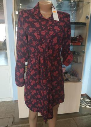 Коротенькое платье с длинным рукавом, спереди на пуговках, на талии завяжется