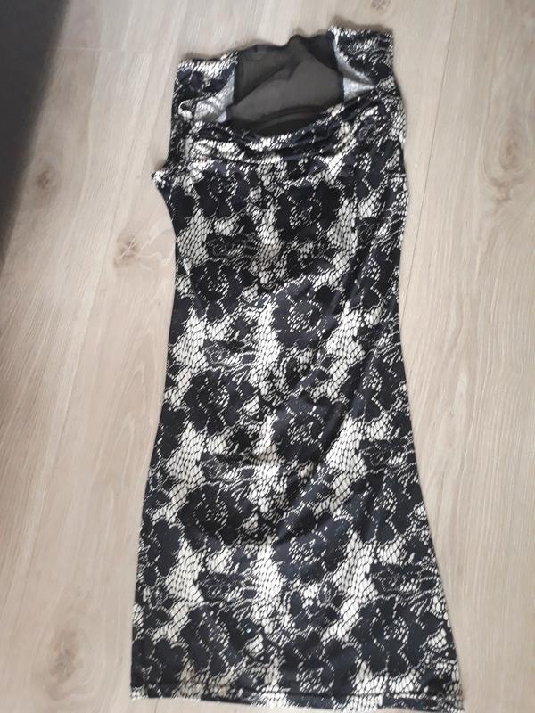 Сукня міні, тоненьке, що облягає на струнку дівчину. На спинці сітка і бант :-) Розмір XS/S. Тканина дуже добре тягнеться, по квіткам є напилення глітером, на фото не передалося. Довжина 82 см, ПОГ - 36, ПОТ - 32, ПОБІДИ - 80, плюс тягнеться на 6 см