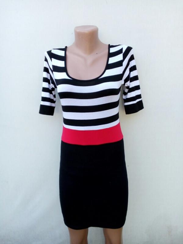 Симпатичненькое плаття по фігурі,поєднує в собі три базових кольори.Красиво виглядає в будь-яких обставинах.