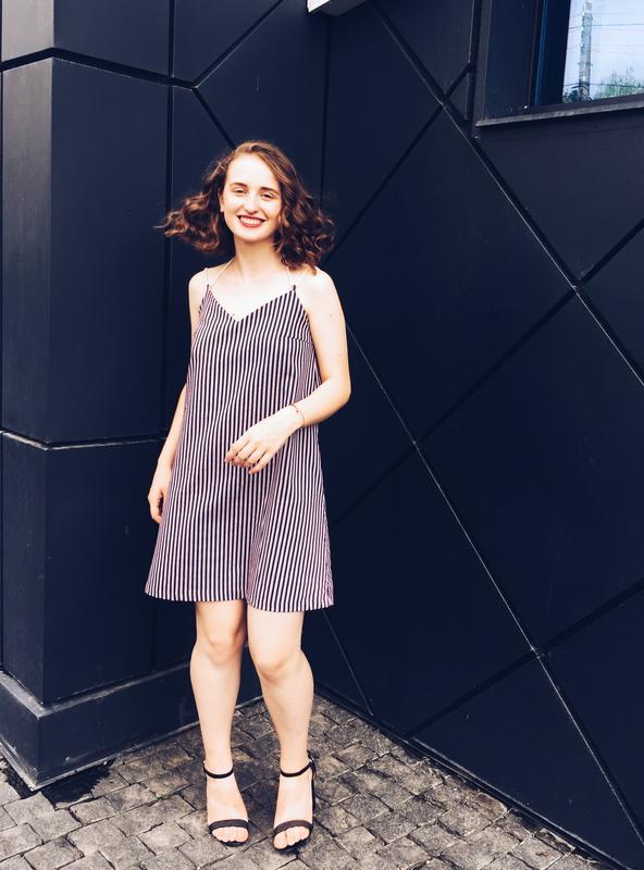Сукня в синьо-червону смужку, стан - ідеальний, немає жодних недоліків, брендова річ від українського виробника.