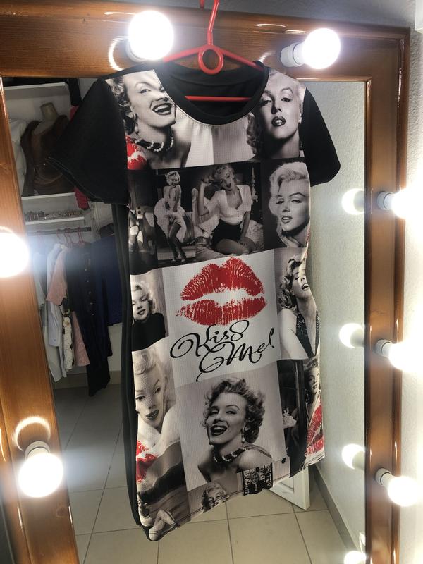 Цікава модель сукні з принтом «Мерлін Монро» Розмір універсал 42-44 Довжина 86 см Плечі 40 см Грудь46 см Талія 42 см Стегна 48 см
