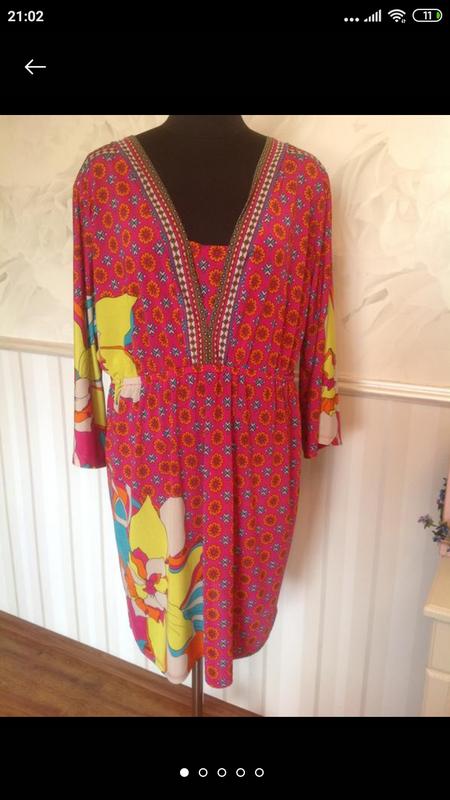 Плаття для дому ,або на вихід!Красиве яскраве плаття з трикотажу-масло, легка, шовковиста, відмінно тягнеться. В дуже гарному стані. На поясі резиночка, рукав злегка кльош. Заміри: Рукав-47 см плече 14 см ПОГ 63 см+ ПІТ 48-70 см ПОБІДИ 71 см довжина 96 див. тканина тягнеться , питайте♥️♥️♥️♥️♥️