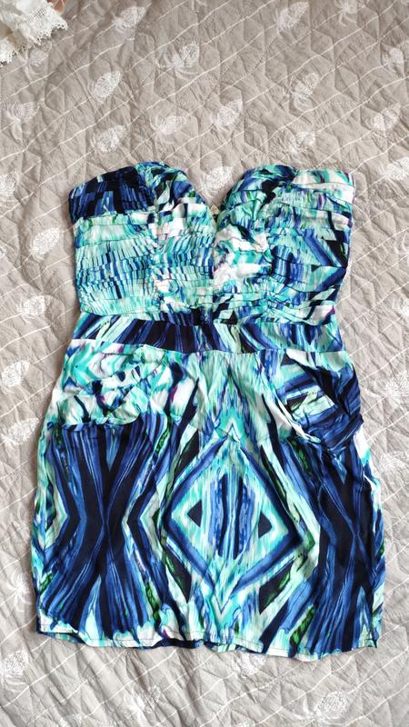 Літнє плаття у бюстьє, на грудях силіконова стрічка, спереду кишені Розмір М (пог 40 см, пот 37см, побіди 46 см) 100%viscose