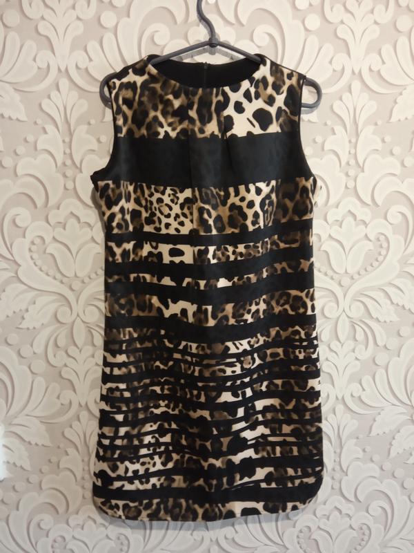 Гарне плаття з цікавим принтом без рукава. По спині довгий замочок. Нове. З Італії. Пошиття акуратне. Довжина 90см. Ширина в поясі від шва до шва 48см.