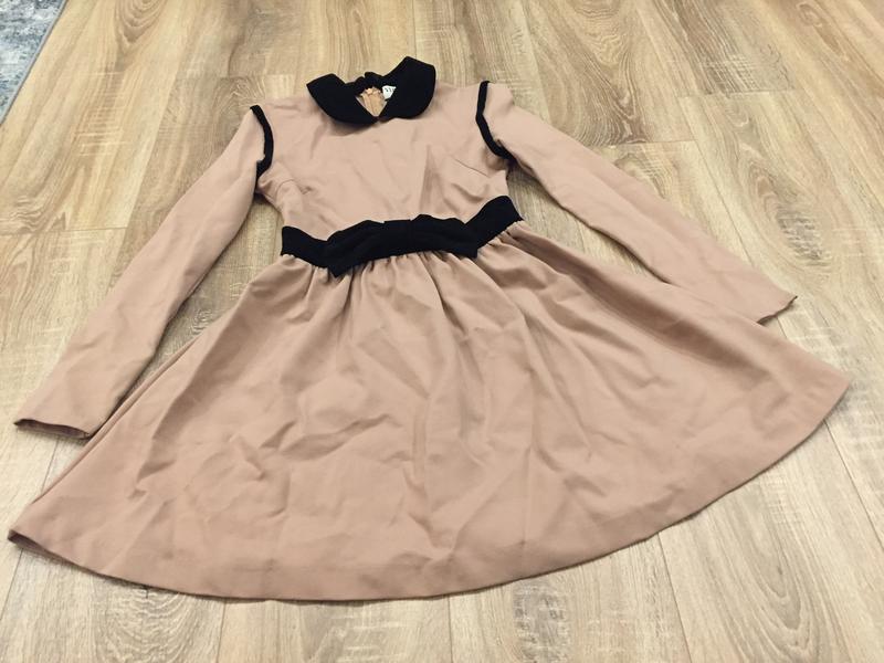 Стильне Плаття , коричневе з чорними оксамитовими вставками