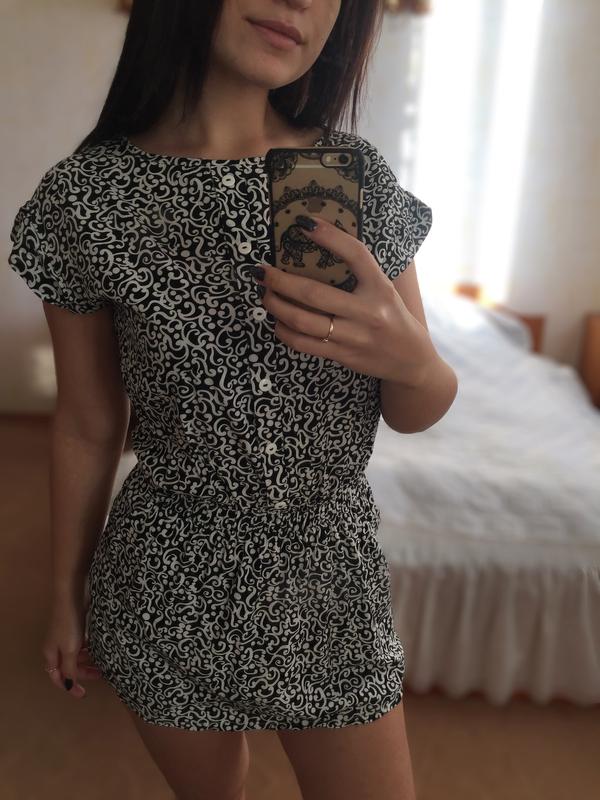 Дуже легке, зручне плаття, жарко в ньому не буде. На зростання не вище 155.