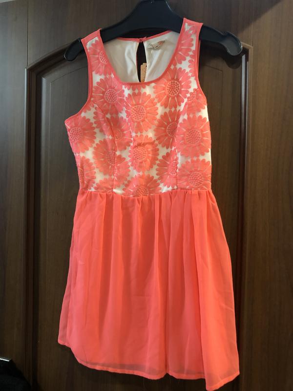 Нове плаття з біркою Ідеальний стан без дефектів Розмір с-м Яскравий насичений колір Куплене в США На невисоку дівчину ростом {Мій ріст 172см} і мені трошки закоротке, бо звикла одягати довше} довжина 80 см талія 70 см грудей 80см Верх -гіпюр Низ-шифон Дуже крутій насичений колір Кораловий Відправляю новою поштою та укрпоштою