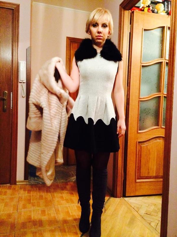 Плаття теплі,в кашку,розмір S,верх молочного кольору,низ чорний,декілька разів одягане,без дифектів