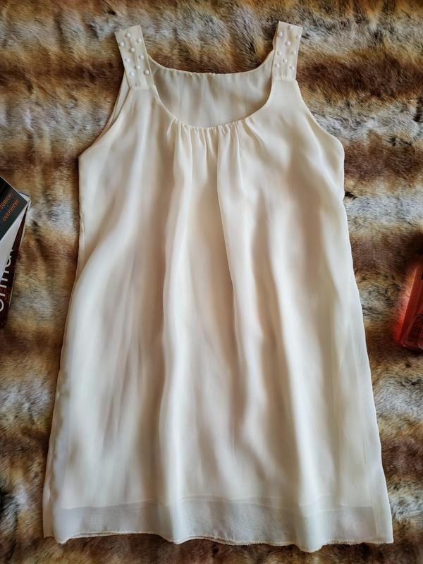 Легка літня сукня. На не високий зріст (або ж носити як майку). Стан ідеальний. Колір молочний. Розмір Xs/S. Додаткові фото та заміри надам.