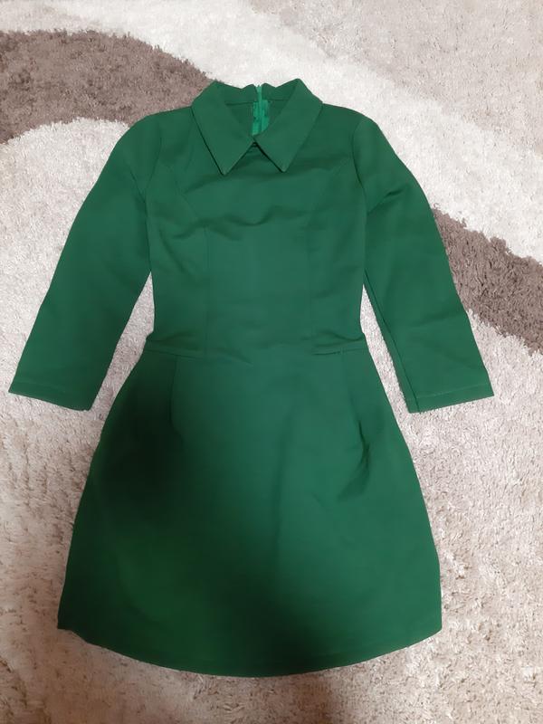 Щільне плаття насиченого зеленого кольору, розмір ХЅ, спіднична частина - пошиття тюльпан. ПІТ 35 см, ПОГ 39 см, довжина 80 див.